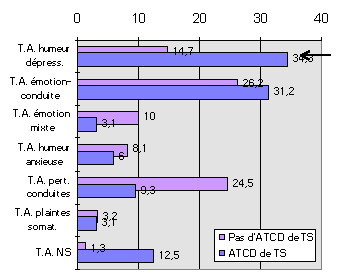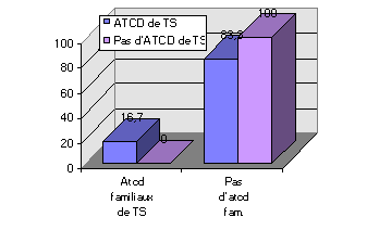 Contrairement à ce quíon aurait pu attendre, nous avons trouvé beaucoup plus díATCD familiaux de TS chez les suicidants de la sous-population des troubles de líadaptation par rapport à celle des troubles de líhumeur.